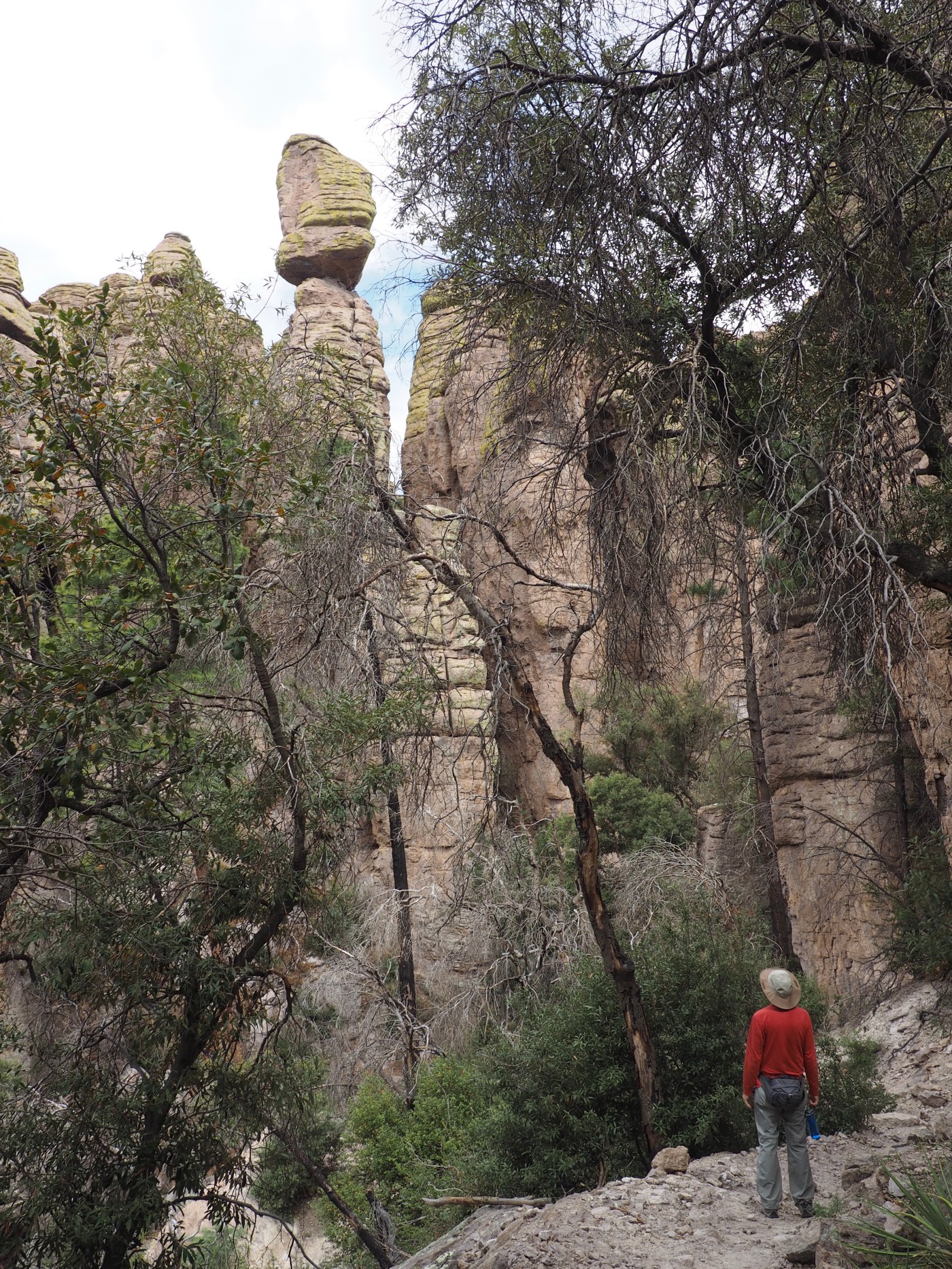 A free shuttle from the Chiricahua Visitor Center provides hikers transportation to the top of the Echo Canyon Trailhead. Sign-up is required prior to the 9:00 a.m. departure, so a little advanced planning is necessary…but you won’t regret it! Once at the top, the 4.2 mile (mostly downhill) trail winds through spectacular rock formations, many of which seem to defy gravity.