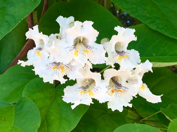 Catalpa trees display delicate blooms with ruffled edges and just a hint of color.