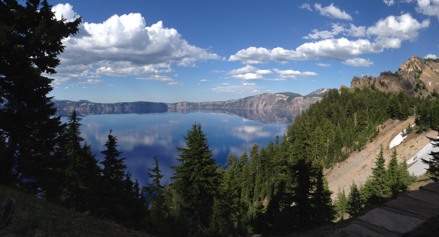 A lone hiker, unfazed by the dangers of a steep, vertical plunge, stepped out for a closeup view from the rim of Crater Lake.