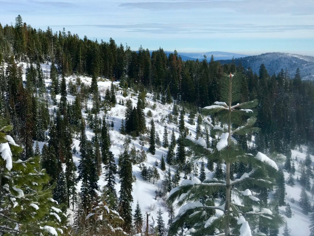 A break in the trees along the Mount Ashland snowshoe trail revealed a breathtaking view of Mount Shasta.